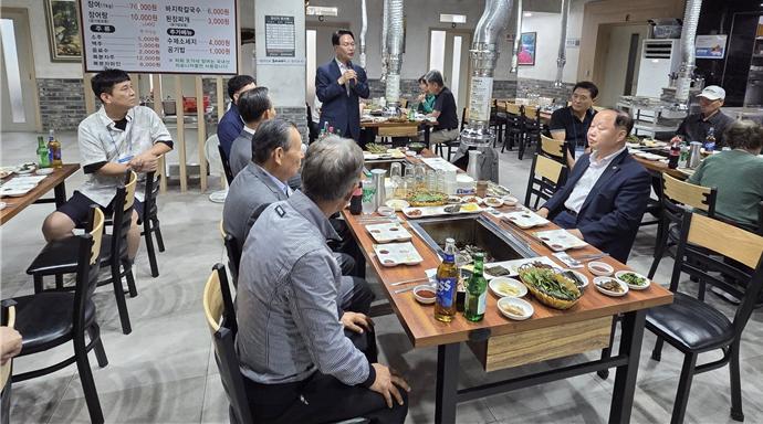 심덕섭 고창군수, 심윤섭 부사공종회장 인사하는 장면