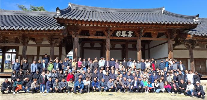 청송 소헌공원 내 운봉관앞에서 기념촬영