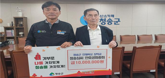그 직후 안효공파종회 회장단은 청송군 윤경희 군수를 예방하고, 청송군 장학기금 일천만원(금10,000,000원)을 직접 전달하였다.