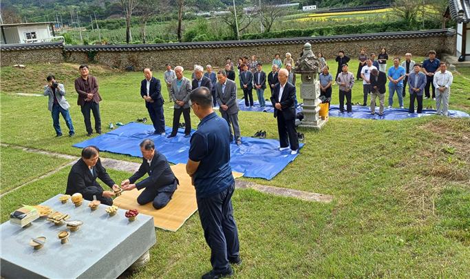 금번 청송 방문에 나선 안효공파종회 임원단은 산불피해를 입은 시조 문림랑공 보광산 묘소 앞에서 고유제(告由祭)를 봉행했다.