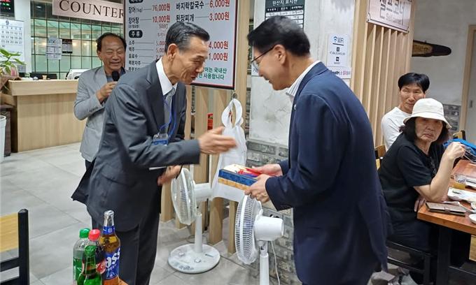 심덕섭 고창군수, 심윤섭 부사공종회장 인사하는 장면 |