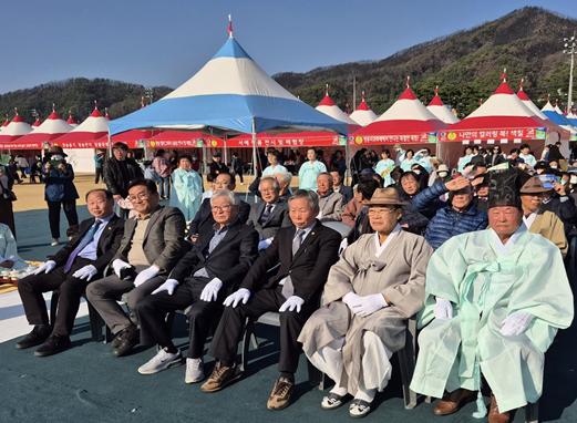 | 소헌왕후 헌다례 참석 일가분 기념사진 (붉은색 점퍼 윤경희 청송군수, 상관 안효공파영중추공종회장, 심상휴 청송군의회 의장) |