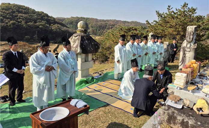 o獻官 以下 諸後孫 序立(헌관 이하 제후손 서립)헌관 및 제관은 묘소 앞에 서십시오.