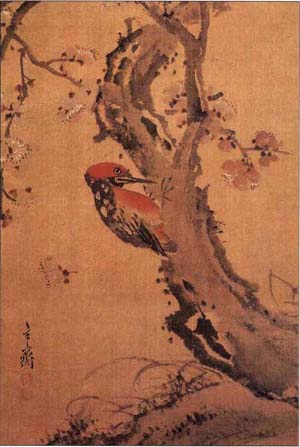 그림 17세조 심사정:<딱따구리>비단에 채색, 25.0×18.0cm, 개인소장