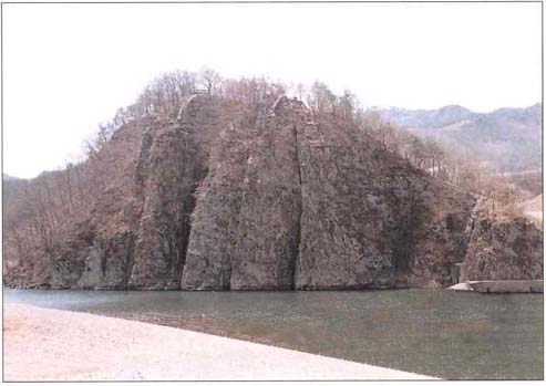 찬경루의 앞에 서쪽으로 강건너 대안(對岸) 보위(洑上)에 암벽(岩壁)이 있으니 원래는 전하는 말에 의하면 몹시 험상(巖形奇險)하였으나 보광산 시조묘소의 장례 전날밤에 천동(天動) 벼락(雷震)이 쳐서 험석(險石)을 부서버려 옥순(玉荀)이 돋아난것 같이 아름다운 부용(芙蓉)이라. 이 바위는 시조산소의 백호날 끝이고 수구(水口)로서 장쾌기묘(壯快奇妙)한 경관(景觀)이란 백호미(白虎尾)에 아미사(峨嵋沙)라 하여 왕비가 탄생할 징조라는 예언이 있었으나 후에 진실로 3왕후가 배출하는 지라 이 바위이름을 현비암(賢妃巖)이라 이름지어 부르게 되었다고 한다.